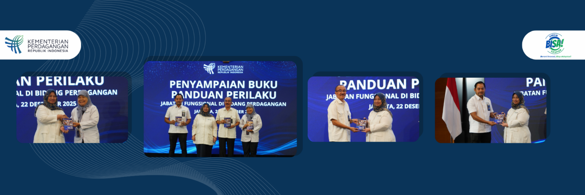 Pusat Pembinaan Jabatan Fungsional (Pusbin JF) Perdagangan meluncurkan Buku Panduan Perilaku Jabatan Fungsional di Bidang Perdagangan dalam rangkaian kegiatan Refleksi dan Apresiasi Jabatan Fungsional Perdagangan. Kegiatan tersebut dilaksanakan pada 22 Desember 2025 di Auditorium Utama Kementerian Perdagangan dan menjadi momentum penguatan budaya kerja serta apresiasi atas kontribusi Jabatan Fungsional (JF) Perdagangan. Peluncuran buku panduan perilaku ditandai dengan penyerahan oleh Kepala Badan Pengembangan Sumber Daya Manusia Perdagangan (BPSDMP), Ibu Mardyana Listyowati, kepada Ketua dari masing-masing Organisasi Profesi Jabatan Fungsional di Bidang Perdagangan. Penyerahan ini mencerminkan komitmen bersama dalam membangun standar perilaku kerja yang sejalan dengan nilai-nilai organisasi dan kebutuhan pelaksanaan tugas JF Perdagangan. Bagi JF di Bidang Perdagangan, buku panduan perilaku ini menjadi rujukan praktis dalam bersikap dan bekerja, baik dalam memberikan layanan, melaksanakan tugas teknis, maupun dalam berinteraksi dan berkolaborasi dengan berbagai pihak. Dengan adanya panduan ini, JF Perdagangan diharapkan memiliki kesamaan pemahaman mengenai perilaku kerja yang profesional, konsisten, dan berintegritas. Lebih dari sekadar dokumen, buku panduan perilaku ini disusun untuk mendukung peningkatan kualitas kinerja dan pelayanan di bidang perdagangan. Panduan ini juga diharapkan dapat memperkuat peran strategis jabatan fungsional dalam mendukung penyelenggaraan kebijakan perdagangan yang efektif. Melalui kehadiran Buku Panduan Perilaku Jabatan Fungsional di Bidang Perdagangan, Pusbin JF Perdagangan mendorong terbentuknya budaya kerja yang berintegritas dan profesional di lingkungan JF Perdagangan. (PUSBIN JF DAG)