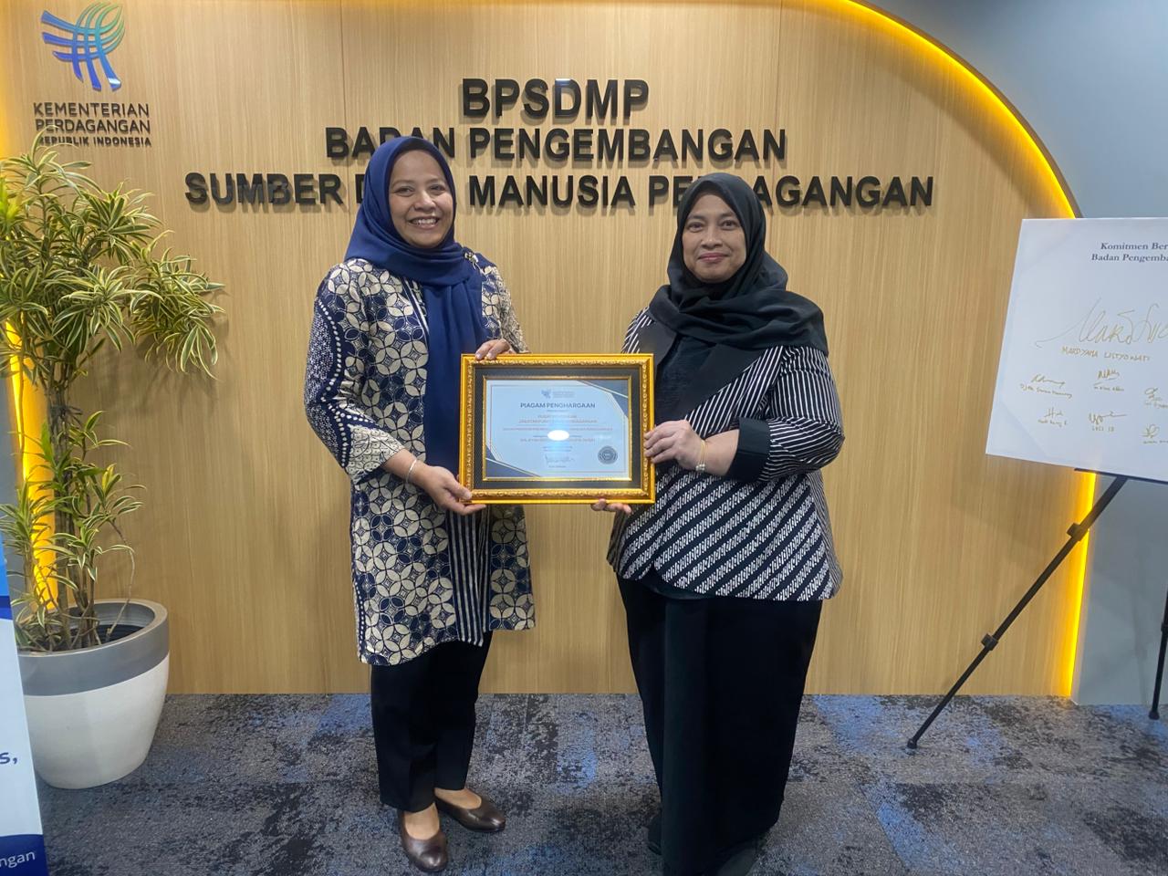 Jakarta — Pusat Pembinaan Jabatan Fungsional Perdagangan (Pusbin JF Perdagangan) memperoleh predikat Menuju Wilayah Bebas dari Korupsi (WBK) sebagai bentuk apresiasi atas komitmen unit kerja dalam mendorong terwujudnya tata kelola pemerintahan yang bersih, transparan, dan akuntabel. Penghargaan tersebut diserahkan langsung oleh Menteri Perdagangan, Bapak Budi Santoso, kepada Kepala Pusbin JF Perdagangan pada Selasa (10/3/2026) di Auditorium Utama Kementerian Perdagangan Republik Indonesia. Predikat WBK merupakan bagian dari upaya pembangunan Zona Integritas di lingkungan kementerian/lembaga yang bertujuan mendorong terciptanya unit kerja berintegritas serta peningkatan kualitas pelayanan publik. Pencapaian ini diharapkan dapat semakin memperkuat berbagai upaya perbaikan tata kelola yang selama ini dilakukan oleh Pusbin JF Perdagangan, termasuk dalam menghadirkan layanan pembinaan Jabatan Fungsional Perdagangan yang transparan, akuntabel, dan berorientasi pada kebutuhan pemangku kepentingan. Bagi para pemangku kepentingan, khususnya pejabat Jabatan Fungsional Perdagangan, capaian ini diharapkan dapat memberikan dukungan positif terhadap peningkatan kualitas layanan pembinaan, serta pengelolaan karier jabatan fungsional secara lebih terarah dan berkelanjutan. Ke depan, Pusbin JF Perdagangan akan terus berupaya menjaga komitmen dalam memperkuat integritas organisasi serta meningkatkan kualitas layanan pembinaan sumber daya manusia di bidang perdagangan guna mendukung terwujudnya birokrasi yang semakin profesional dan melayani. (Pusbin JF Perdagangan)